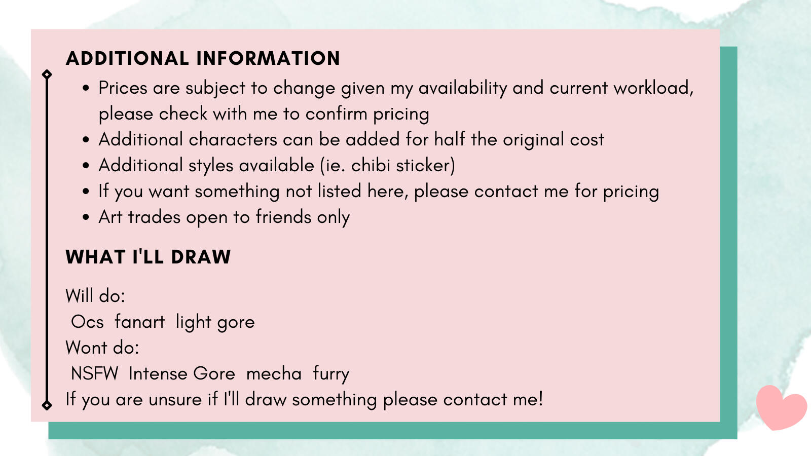 Hey! I'm Eros and I'm happy you enjoy my art enough to think about commissioning me! below are some examples of my work as well as some ratesThese are subject to change given my availability!